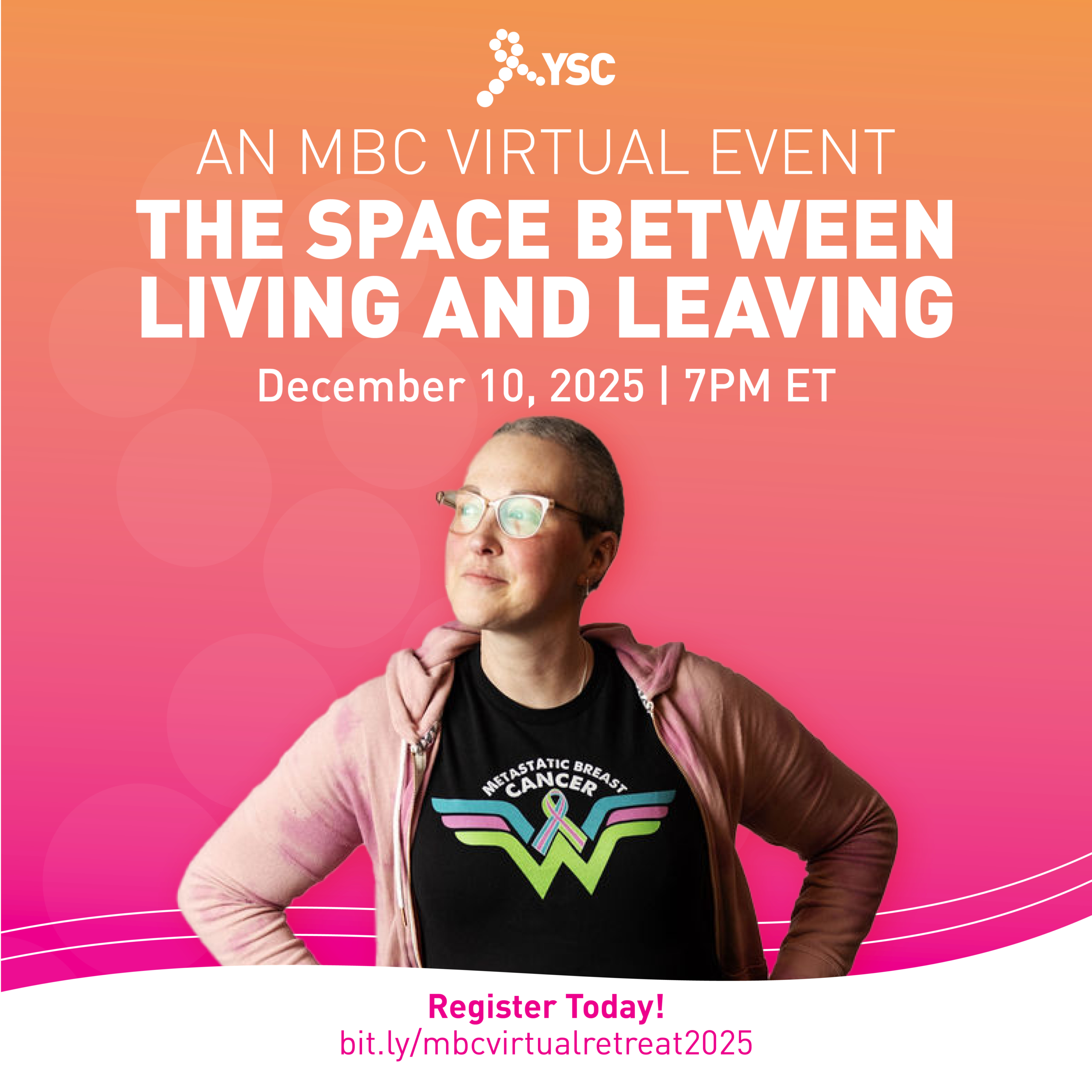 An MBC Virtual Event: The Space Between Living and Leaving Dec 10, 2025 07:00 PM ET Join us for The Space Between Living and Leaving, a two-hour virtual retreat designed for individuals living with metastatic breast cancer (MBC) and their co-survivor support network. The program will take place in two parts, allowing attendees to join […]