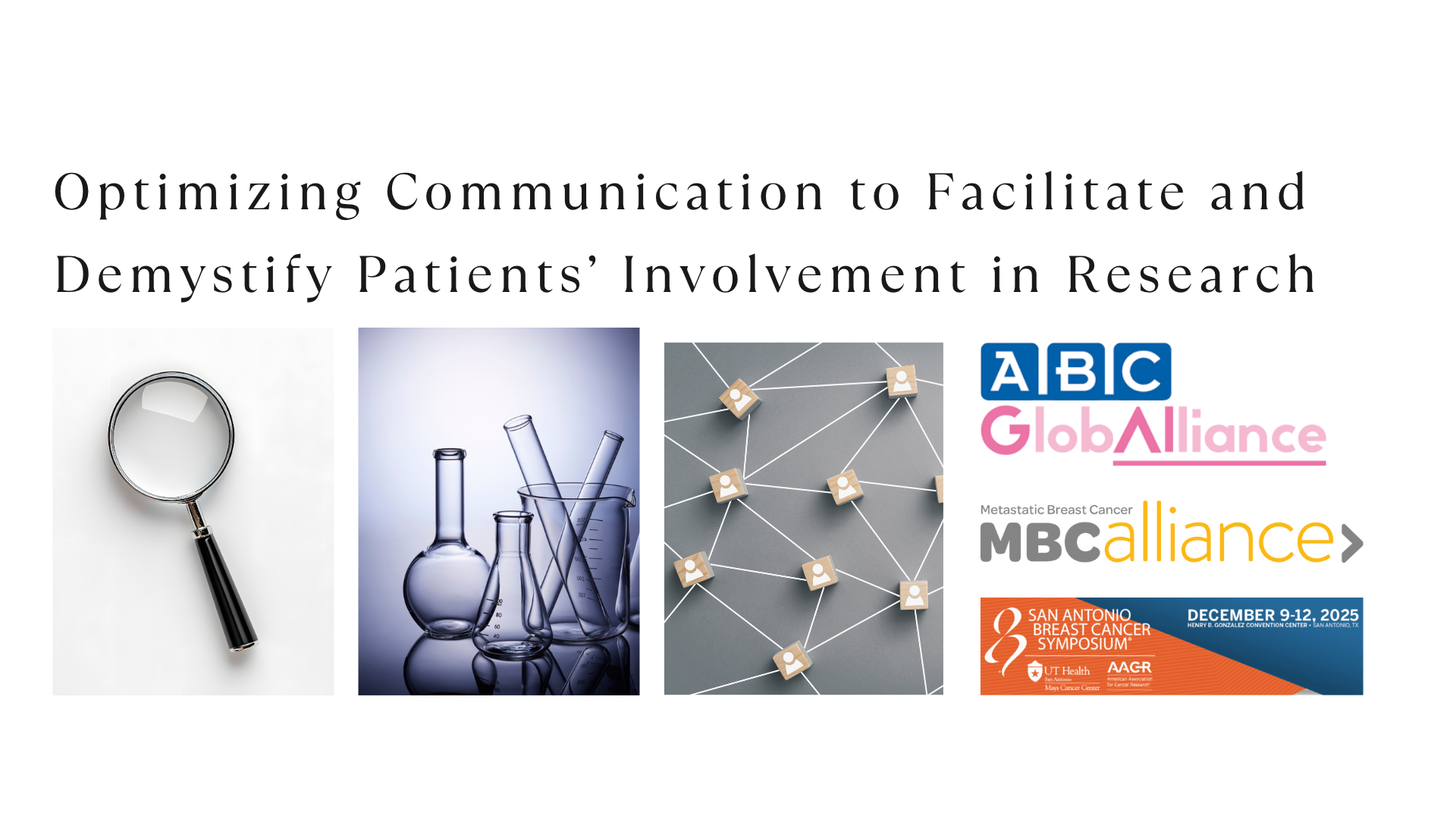 Date & Time Date: Wednesday, December 10, 2025 Time: 12:00 PM – 1:00 PM CST Location Henry B. Gonzalez Convention Center San Antonio, TX (Please check the official SABCS & ABCF program for the exact room location) Event Description The Metastatic Breast Cancer Alliance (MBCA) is proud to host a special patient advocacy educational session […]