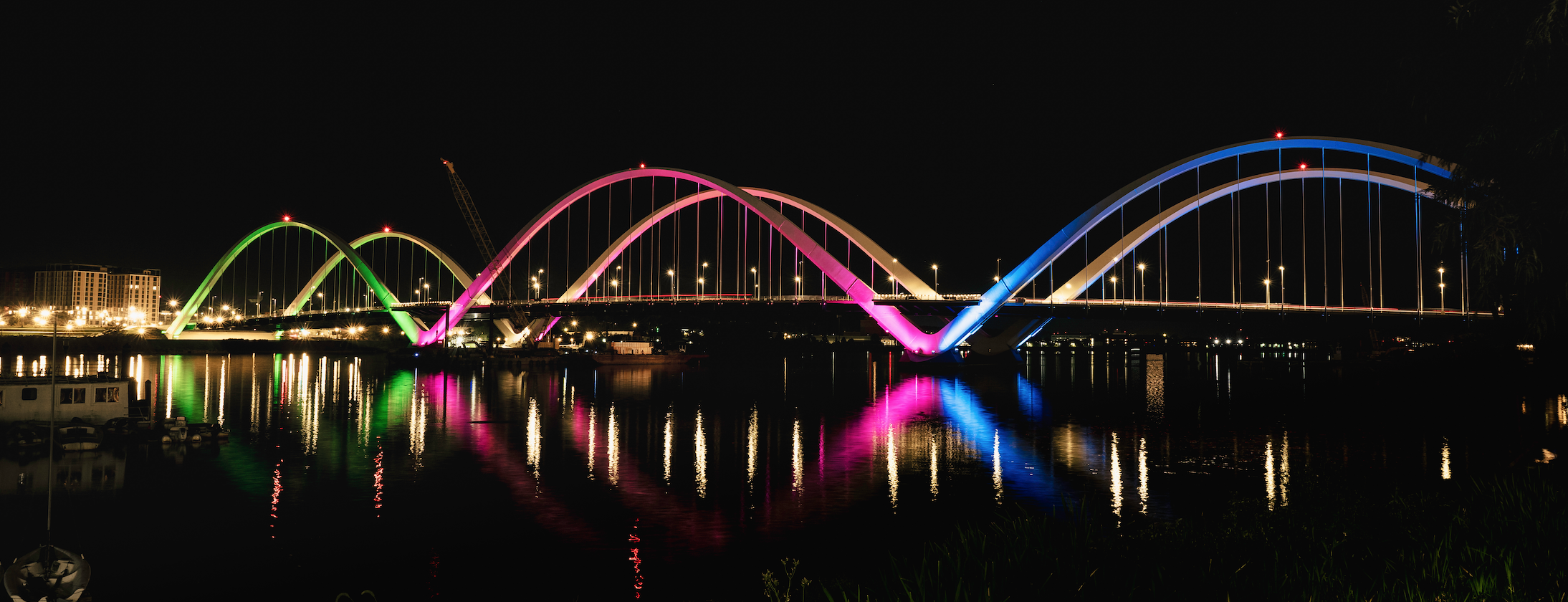 The Frederick Douglass Memorial Bridge in Washington D.C. is illuminated for #LightUpMBC.