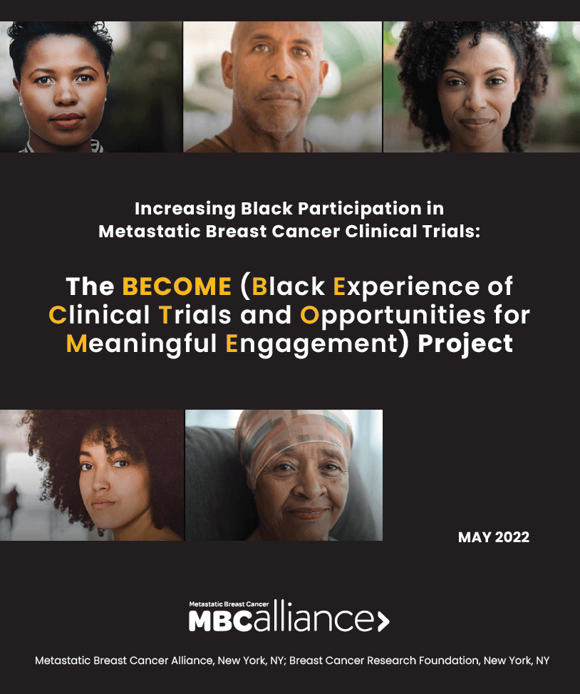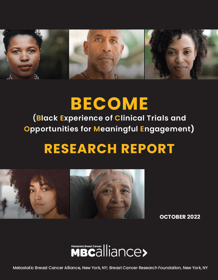 Building on a 2019 project conducted by Marina Kaplan, an epidemiologist who lived with metastatic breast cancer, BECOME is a new research initiative designed to find solutions within the Black community. Using real-life patient input, BECOME looks for practical and actionable ways to make it easier for Black people living with MBC to take part in research trials. Your survey responses will help patients make more knowledgeable decisions, educate doctors on how to support patients in joining trials, and help researchers understand and design clinical trials in a way that encourages Black participation.