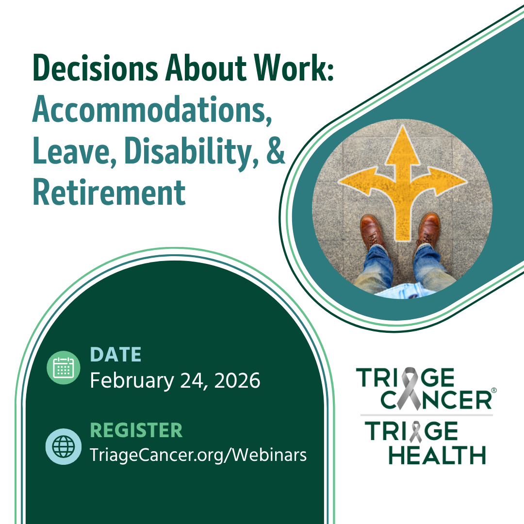 This webinar will discuss managing work and a cancer diagnosis, including how to continue working during treatment, take time off, replace lost income, understand retirement options, and navigate the health insurance and financial implications of each decision.